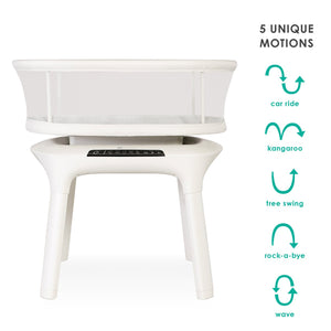 The 4moms® mamaRoo sleep® bassinet uses the same proven motions of the 4moms mamaRoo® infant seat to help your baby fall asleep and stay asleep longer. Soothe and comfort baby in the 4moms mamaRoo sleep bassinet with its natural bounce and sway motions that move just like parents do.