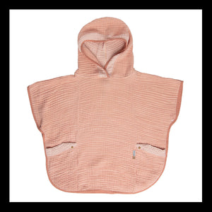 The bath poncho has a hood and is easy and quick to put on over your child's head.