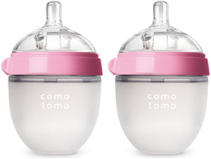 Comotomo Baby Bottles feature innovative and sensible design to most closely mimic natural breastfeeding. Our naturally shaped, soft, silicone nipples are ideal for babies who have trouble transitioning from nursing to bottle-feeding. Your little one will love to hold onto the skin-like, soft and squeezable body that is like no other bottle in the world. And you will fall in love with our wide-neck design for brushless, stress-free, cleaning bliss! Our bottles are equipped with truly innovative vents that are smartly designed to prevent colic, while completely eliminating annoying leaks. They are quite possibly the most thoughtful bottles ever made! Our 5oz bottles come with our truly slow flow nipples designed for newborns up to 3 months, and 8oz bottles come with our medium flow nipples designed for 3-6 months babies.