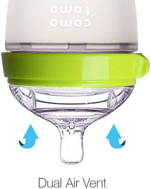 Comotomo Baby Bottles feature innovative and sensible design to most closely mimic natural breastfeeding. Our naturally shaped, soft, silicone nipples are ideal for babies who have trouble transitioning from nursing to bottle-feeding. Your little one will love to hold onto the skin-like, soft and squeezable body that is like no other bottle in the world. And you will fall in love with our wide-neck design for brushless, stress-free, cleaning bliss! Our bottles are equipped with truly innovative vents that are smartly designed to prevent colic, while completely eliminating annoying leaks. They are quite possibly the most thoughtful bottles ever made! Our 5oz bottles come with our truly slow flow nipples designed for newborns up to 3 months, and 8oz bottles come with our medium flow nipples designed for 3-6 months babies.
