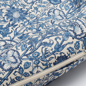 Curvaceous and entwined, Pink & Rose features intertwining roses and meandering flowering carnations. Designed by William Morris in 1890, this delicate interpretation recreates the subtle effects of the inks used in the original.