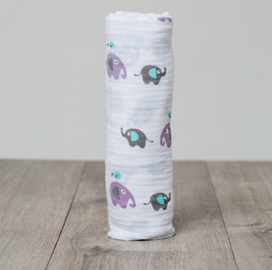 Lulujo Bamboo Muslin Swaddle Blanket - Elephants