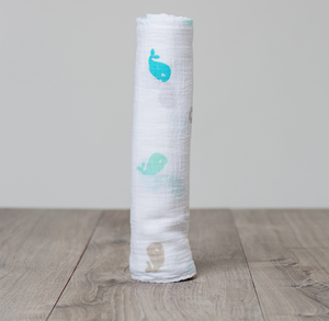 Lulujo Bamboo Muslin Swaddle Blanket - Whales