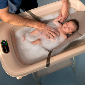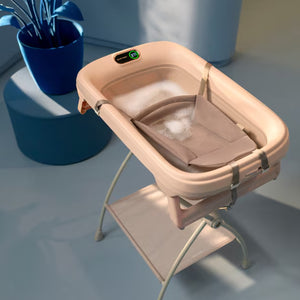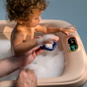 Indigo Plus offers the best comfort from newborn to toddler. The cosy QuickDry newborn insert cradles your baby during those early months and can be removed once they’re able to sit up. The built-in HighSense thermometer measures the temperature from the bottom of the bath where the water’s warmest. This feature is exclusive to Indigo Plus and Indigo, and unique in the baby bath market, ensuring every bathtime with your little one is just right.