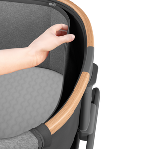 And just because it’s time to sleep doesn’t mean your bonding time has to end. Thanks to the Iora’s five different height positions and easy co-sleeping slide function, your baby always fits perfectly next to you. Going away for a little trip or is your little one going on a sleepover at grandma’s house? No worries. You can easily fold and take the cozy Iora with you in its convenient travel bag. A baby’s life is full of firsts. Exhausting! There’s no better way to end a day of discovering all kinds of new sensations than with a safe and sound night’s sleep. Whether you need to feed, change a diaper, or even the sheets in the middle of the night, all the essentials are within reach in Iora’s large storage basket. This means you can rest easy at all times, and your little one can dream about all the memories made that day, just like you. Ready to give your little one their own space? Simply move Iora to the baby’s room. Its comfortable mattress and sturdy frame are perfect to double as a stand-alone crib. And your baby can continue sleeping in their own, familiar bed. The Maxi-Cosi Iora. At the end of the day it’s all about comfort.
