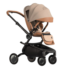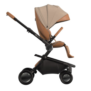 Clean and sophisticated with chrome details and a chic, leather look finish, Mima Creo redefines contemporary pushchairs with eco-conscious materials.