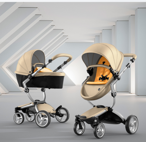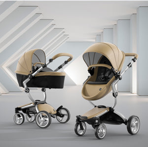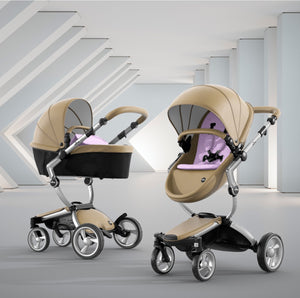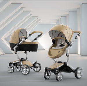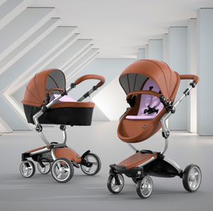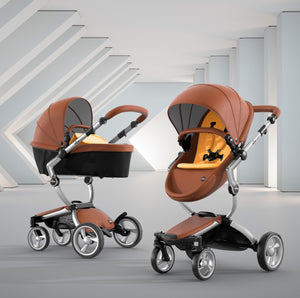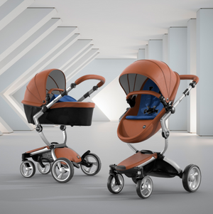 The first thing you notice about this stroller is the leatherette, available in four different colors. The leatherette is a unique look that sets it apart from other high end strollers. The shape of the seat and sturdy sunshade maintain a modern design that is comfortable for your baby.