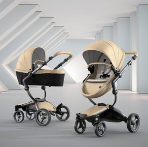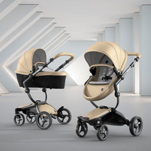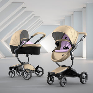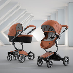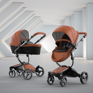 The first thing you notice about this stroller is the leatherette, available in four different colors. The leatherette is a unique look that sets it apart from other high end strollers. The shape of the seat and sturdy sunshade maintain a modern design that is comfortable for your baby.