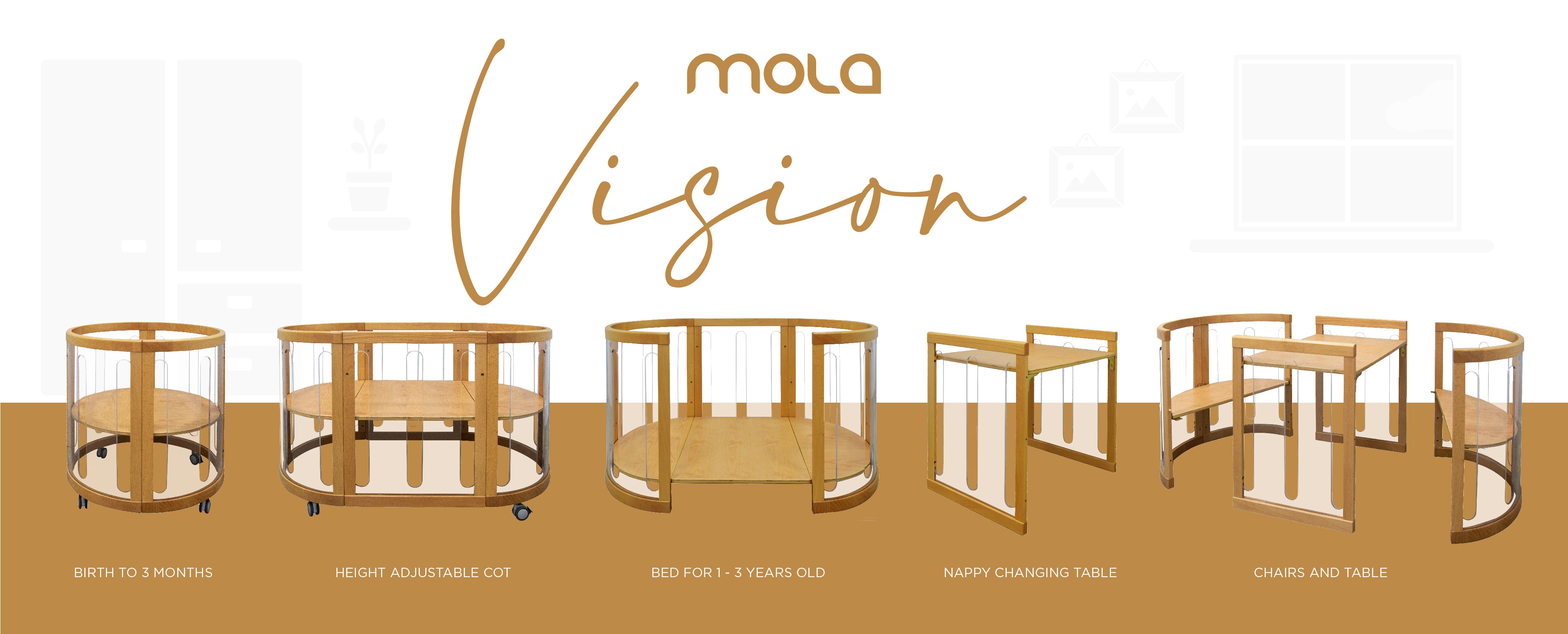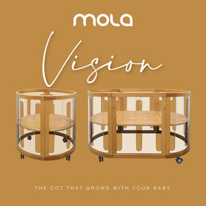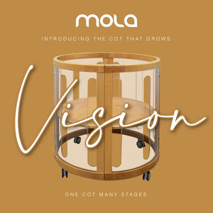 MOLA VISION is a sophisticated cot design and concept, made with beechwood.
