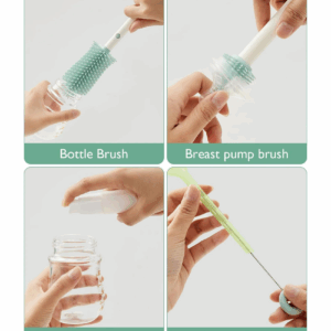 Versatile Cleaning Tools – Momcozy bottle brush set includes different brush heads to cater to various cleaning needs: bottle brush head for bottles and breast pumps, angled brush head for teats, and silicone tube brushes for narrow openings like straws.
