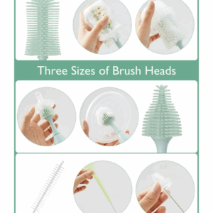 Safe and Clean – Crafted from food-grade silicone, our bottle brush set is BPA, PVC, and phthalate-free. The non-slip handles offer a comfortable grip and can be hung up for easy storage.