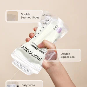 Effortless milk storage for busy mums—these premium Momcozy breastmilk storage bags are designed to make your pumping and freezing routine smoother and safer. Each bag includes a built‑in temperature‑sensing indicator that changes colour if the contents warm up, giving you extra peace of mind. With a robust dual‑zip seal to prevent leaks and a space‑saving, flat‑freeze design, these bags stand upright and stack neatly in the freezer, helping you stay organised. Ideal for storing, freezing and thawing expressed milk, they offer convenience and reliability when you need it most.
