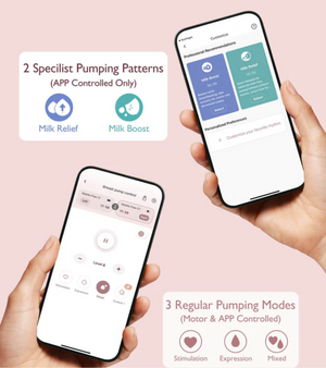 Personalize patterns via the Momcozy app, adjusting mode and intensity to suit your comfort and preference