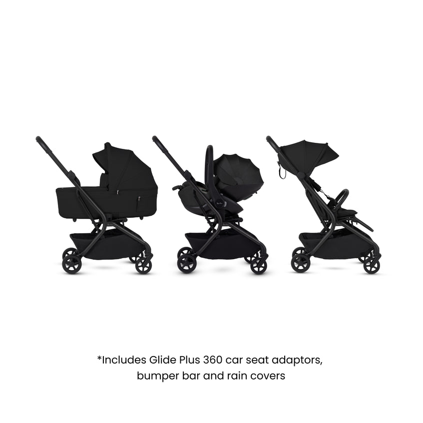 - Glide Plus 360 car seat included to transform into complete newborn travel system