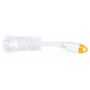 The NUK Bottle Brush 2 in 1 was specially developed for cleaning baby bottles and teats. Thanks to its stable bristles it cleans particularly thoroughly and comes with an integrated little teat brush in the handle. This ergonomic handle lets you apply stronger pressure as you clean and is optimal to hold.