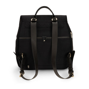 Designed with backpack straps and a carry handle, this flexible diaper bag includes multiple pockets for stashing all of your essentials and includes an insulated bottle bag and a changing pad, which stores neatly into a clutch with room for diapers and wipes.