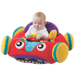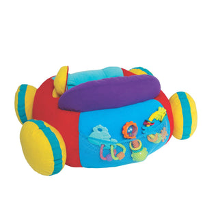 Beep beep! Sit and play in the Playgro Music and Lights Comfy Car. This plush car packed with musical features encourages motor skill development and imaginative play. Baby will love the sound of the horn beeping, the indicator clicking and the rattling balls spinning. This adorable baby car also comes with a side mirror to help baby learn about reflections. Once baby has developed the ability to sit independently, the Playgro Music and Lights Comfy Car provides a safe place to play, including a soft plush surround for peace of mind, should they overbalance. This engaging stationary play space, allows baby to drive wherever their imagination takes them! Easily detach and attach the music and lights driver toy to prams, strollers or capsules for another way to play on the go.