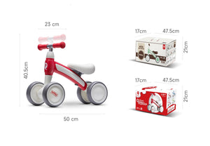Kids can practise their balance on the Q Play Cutey. This has 4 wheels for greater stability. The light frame and stable design make the Q Play Cutey a great choice for kids who aren't ready to pedal – just push off the ground to go.