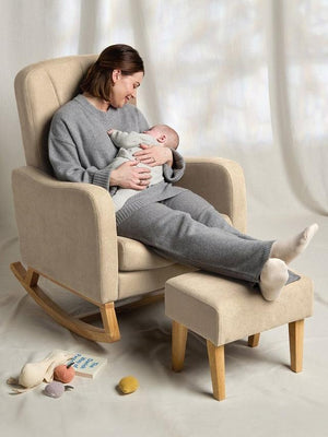 Ergonomic support - Carmel is intuitively designed to provide full body support, with an extended backrest, lumbar support cushion and curved armrests, so that you can find your optimum when nursing or cuddling your little one. After a long day it’s the perfect place to relax, with the coordinating, padded footstool providing added support for tired feet.