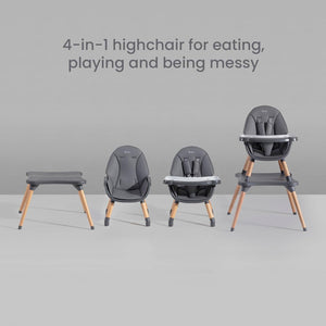 Eat&Play is the 4-in-1 highchair and play table that does it all. Transforming effortlessly from highchair to table-side chair, toddler chair and play table, Eat&Play is suitable for snack time and playtime from 6 months to approx. 5 years old.