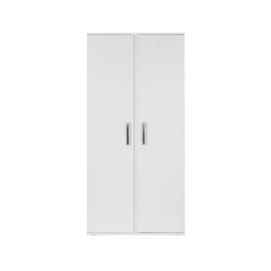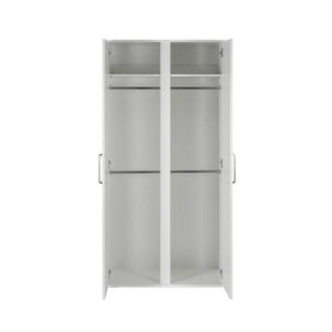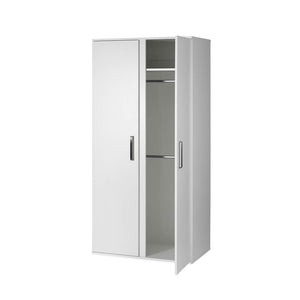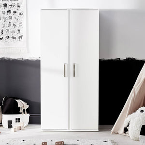 The Finchley Wardrobe features a shelf and adjustable hanging rail, ensuring space for clothing and belongings. Brushed chrome handles complement the white satin finish, delivering a contemporary look and feel.