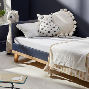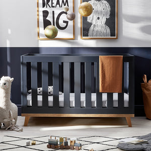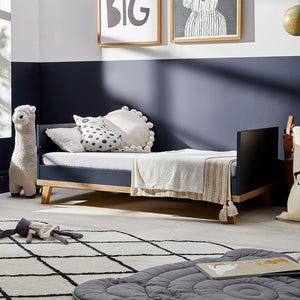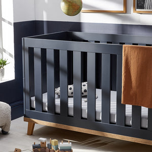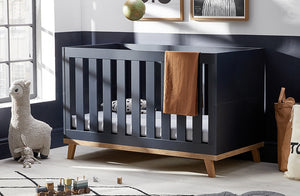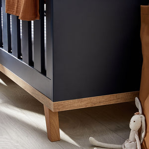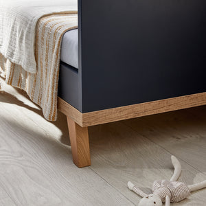 Designed to grow with your little one, the St Ives Cot Bed is suitable from newborn to toddler (approximately 4 years). The stylish deep blue design is complemented by contrasting feet in a warm oak finish for a standout look.