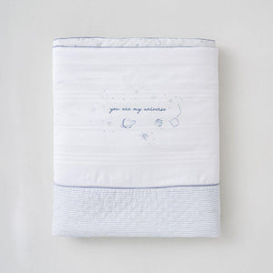 Beautifully designed, this charming 4 tog quilt is perfect for keeping snug in the winter months. Made from 100% cotton, it’s suitable from 12 months onwards and will see your little one through their toddler years. The delicate space print is paired with a fun strip print, perfectly finished with quilted stitch detail and a stunning moons and stars embroidery.