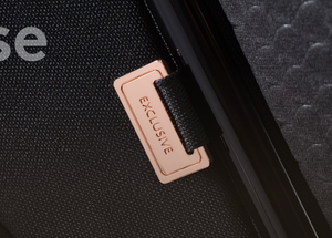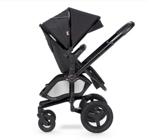 The black palette is complemented by rose gold highlights on the signature metal badges, while a sumptuous faux fur seat liner perfects the look.