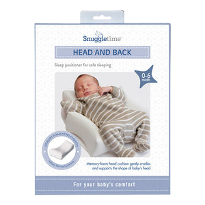 The Snuggletime Head and Back Sleeping positioner is a safe sleeping cushion which supports your babies back and sides while sleeping.