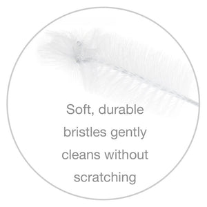This unique, 2-in-1 cleaning tool has clever design features that ensure safe and efficient cleaning of your baby’s bottles and teats. Soft, durable bristles gently cleans without scratching. A long handle offers maneuverability when cleaning different styles of bottles and drinking cups. The teat cleaner neatly slides into the handle so the brush can be stored in an upright position, which is more hygienic.