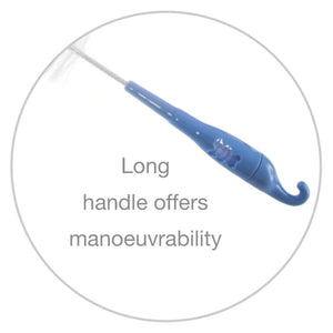 - A long handle offers maneuverability when cleaning different styles of bottles and drinking cups.