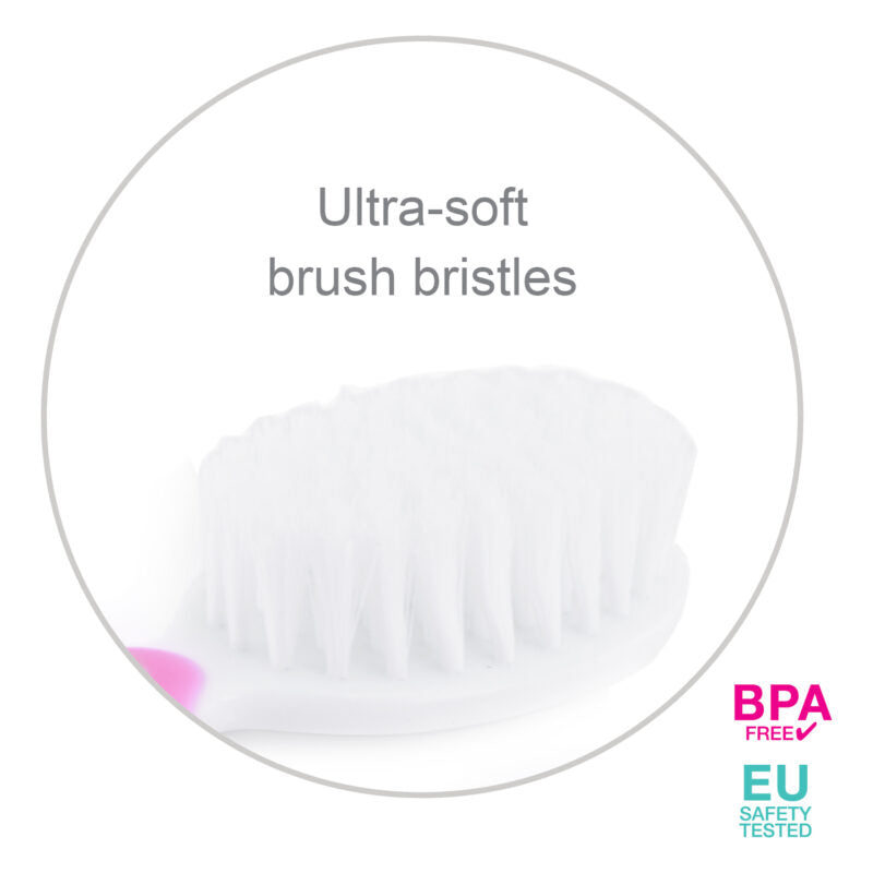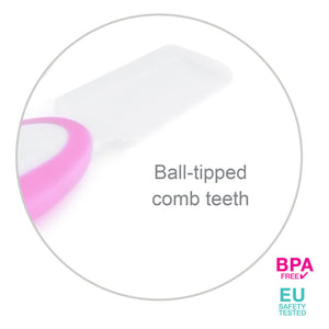 - Grooming time is made easy with the ultra-soft brush that gently remove tangles and the comb’s teeth (softened by tiny balls at the tips) glide through your baby’s hair.