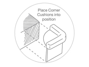 - Ensure Corner Cushions are positioned correctly on furniture edges at all times.