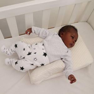 The Snuggletime Bamboo Inclined to Sleep, Sleep Positioner features a luxurious bamboo removeable cover. This elevated wedge body pillow helps relieve reflux, nasal congestion and earache while curved side wedges adjust to secure baby in place.