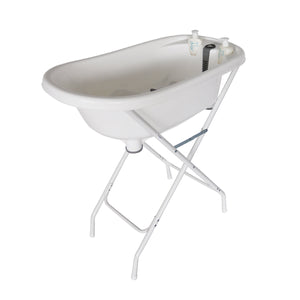 Our premium bath tub is suitable for babies from birth and offers parents the ideal bath solution with multiple bath tub features, newborn bath seat support and metal stand.