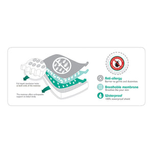 The Healthex Covering over a PU foam offers protection against mould and mildew. Healthtex fabric protects the foam from dust mites and bed bug infestation. These allergens are responsible for the majority of respiratory infections in babies.