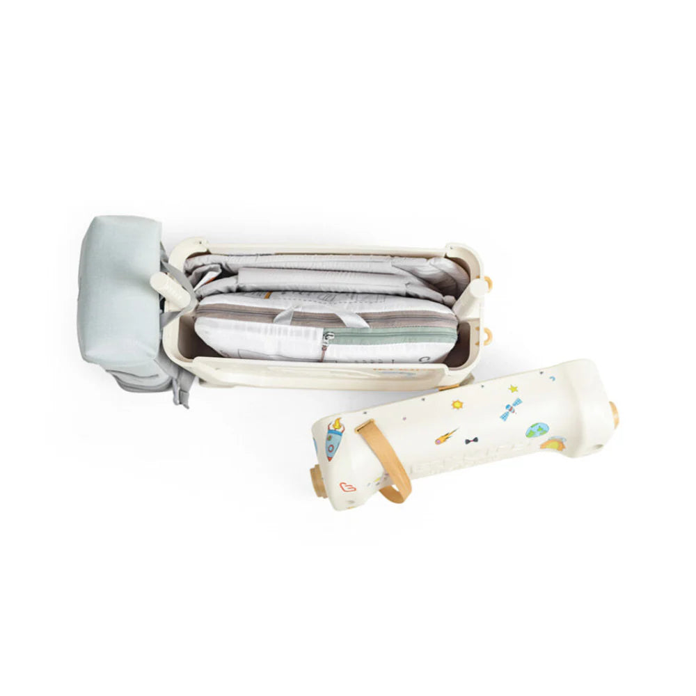 The CloudSleeper™ is the all-in-one inflatable travel bed for toddlers and children three years and above. It's a travel bed made easy that's small enough to fit inside your backpack or hand luggage. Lightweight and all-inclusive, it has no loose parts.