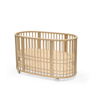 The soft oval shape cocoons your baby, offering a familiar and comfortable place to rest and dream. When your little one is ready to start exploring on their own, you can remove the wheels and one side of the bed for easier access for them to climb in and out. With its timeless design and versatile functionality, the Stokke Sleepi Bed is the perfect centerpiece for your nursery.