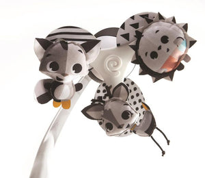 Uniquely designed developmental black & white Take-Along Mobile for on the go fun. Let's develop in style! THE PERFECT VISUAL STIMULATION. The 3-in-1 development mobile's design uses contrasting black & white colours to encourage baby's sight from day one