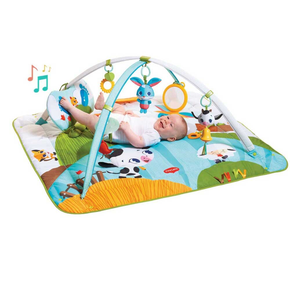 Fun dual-position baby-activated kick&play response pad. Extra-large play mat offers plently of room for baby. Closed border option creates cozy & comforting environment. 18 Developmental activities to help baby develop while having fun. Adjustable arches for more play modes. The mat is machine washable.